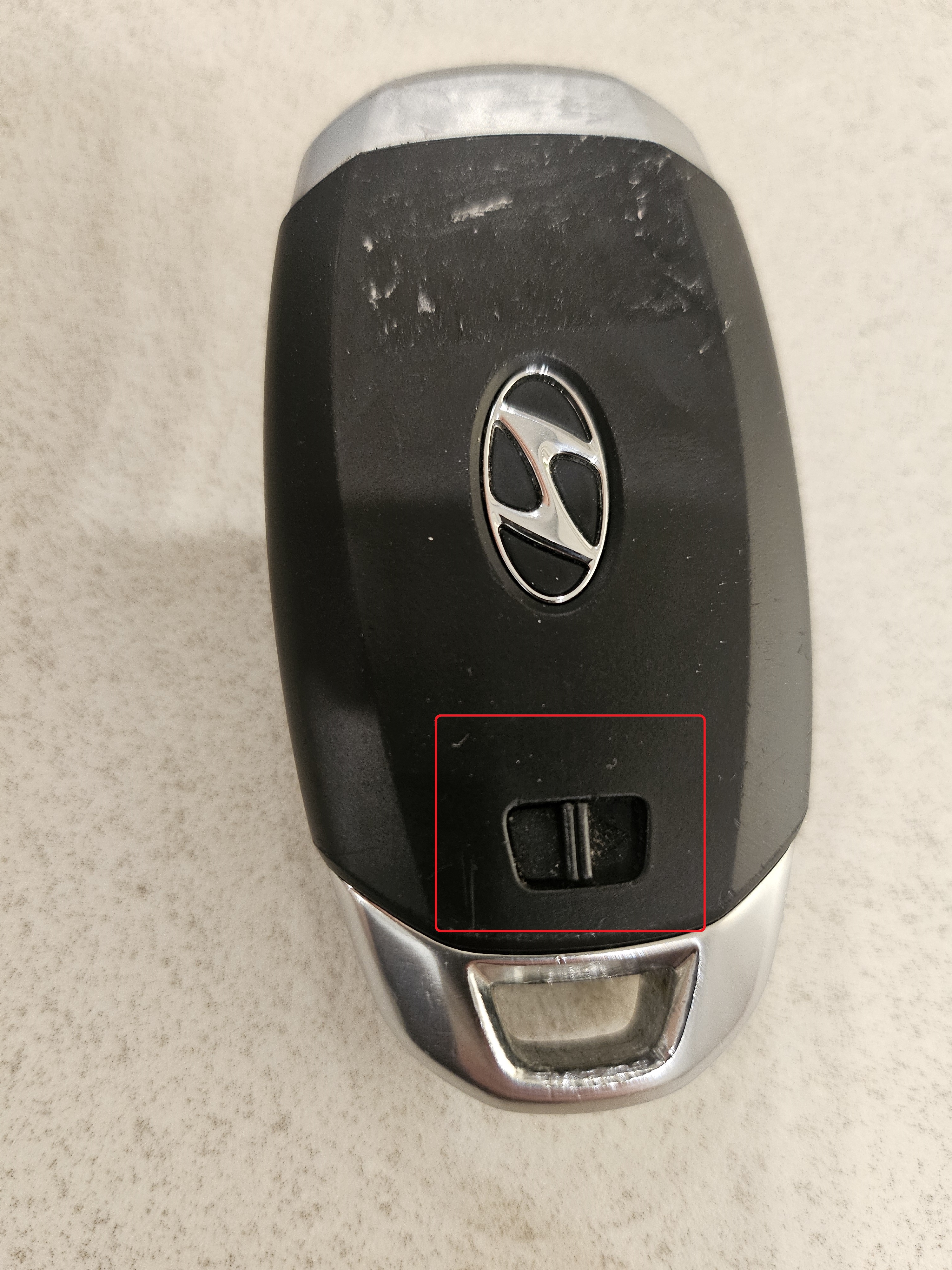 비상키를 분리하려면 스마트키 뒷면 빨간 박스에 있는 홈부터 찾아야한다.